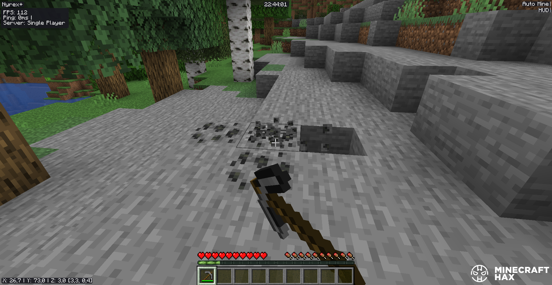 Nyrex Client removes most routine tasks: automatic eating, resource mining, tool switching, and fast actions using macros. Freecam, smooth Elytra flight, and coordinate saving make world exploration more convenient and safer.