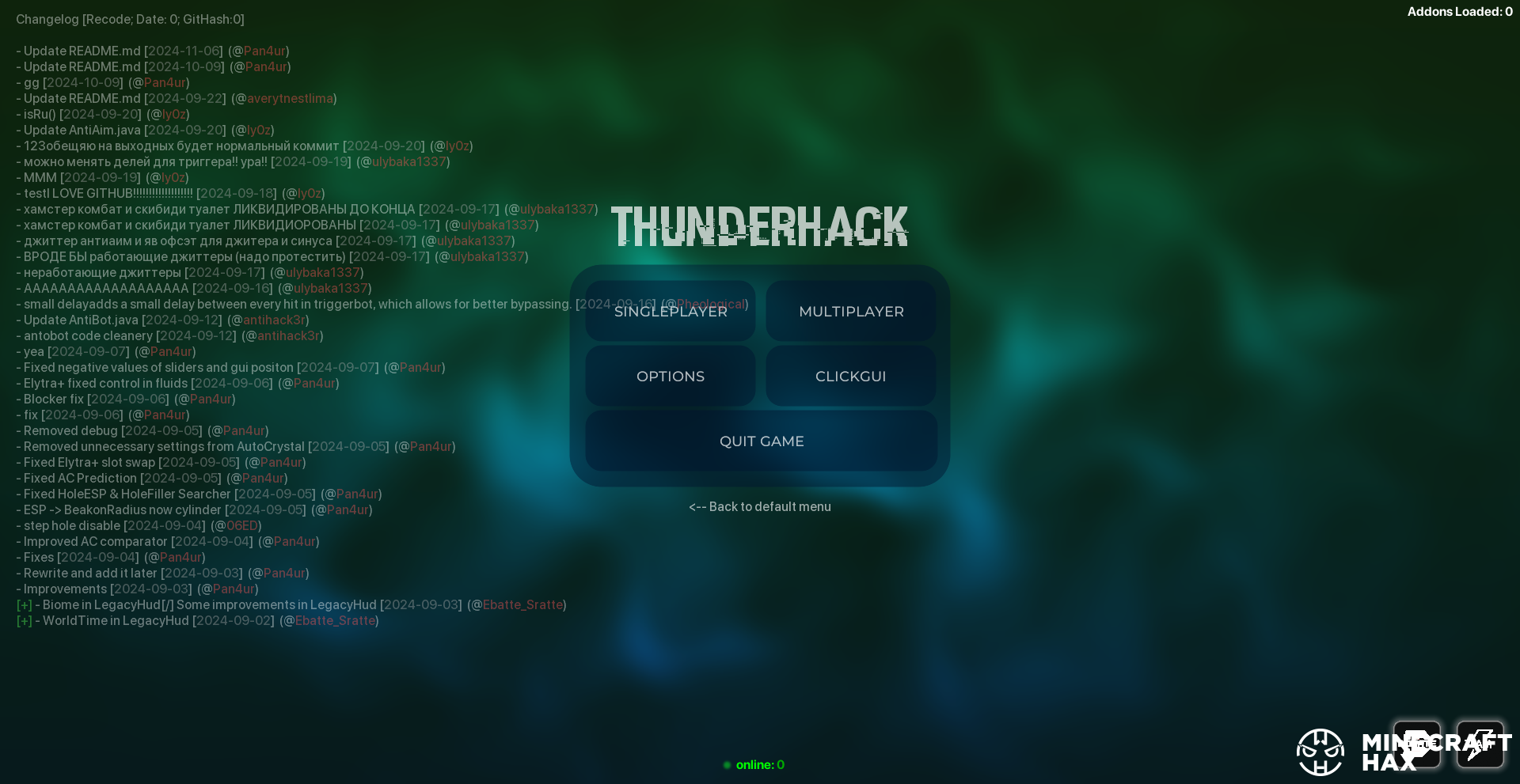 Hacked client ThunderHack Recode is a continuation of the legendary ThunderHack, combining powerful functionality, a stylish interface, and excellent optimization. If you are looking for a modern hack client with strong PvP capabilities and one of the best ClickGUI implementations, ThunderHack Recode is definitely worth your attention.