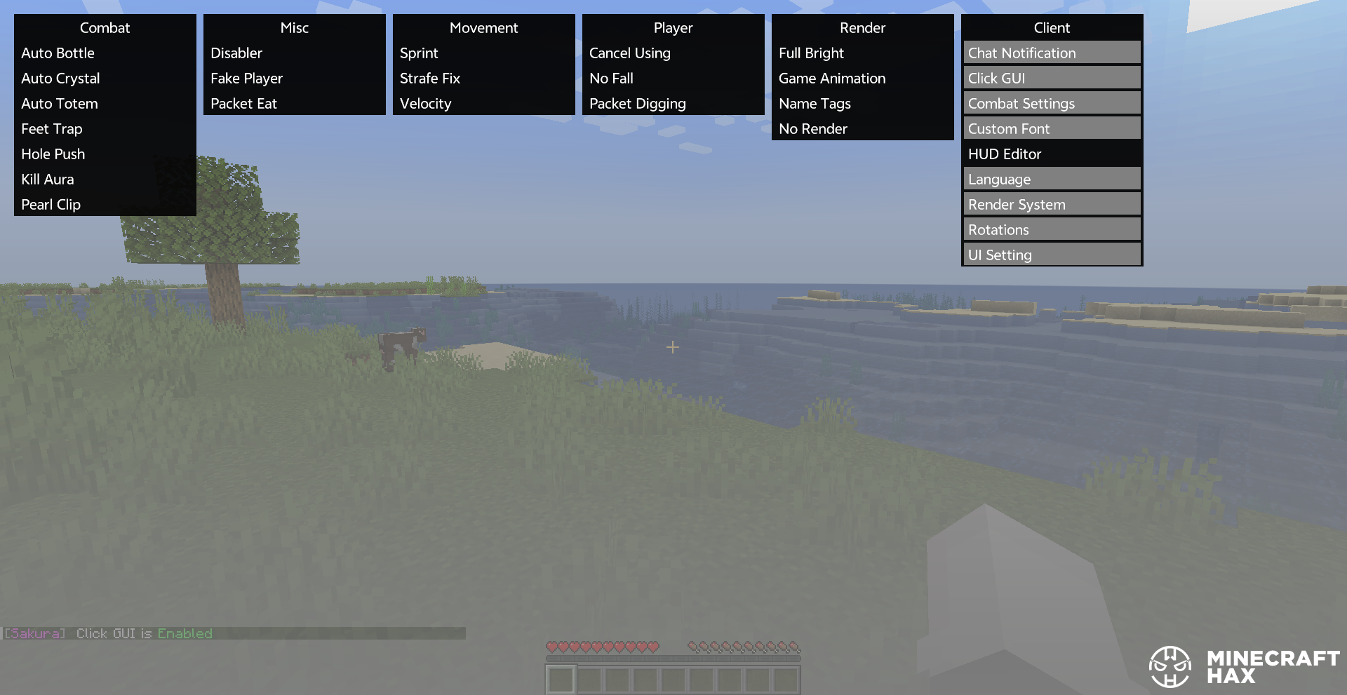 Sakura Client provides a wide range of capabilities that cover the main aspects of gameplay: