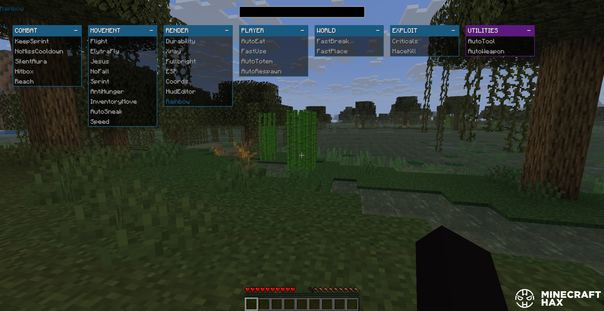 Smooth animations, fluid transitions, and rainbow-style effects give the hacked client a stylish and «ghost-like» feel, making it look modern even compared to popular PvP clients.