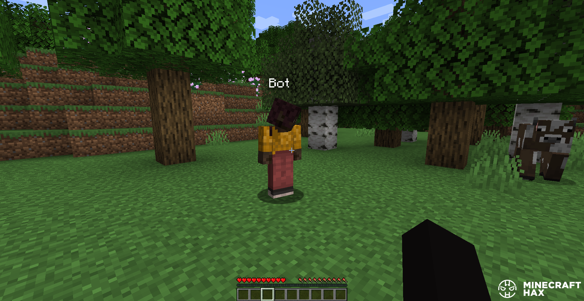 The hacked client automatically equips the best armor, keeps the inventory organized, and replenishes consumable items. Fast chest looting saves time, while reduced hunger loss improves overall survivability.