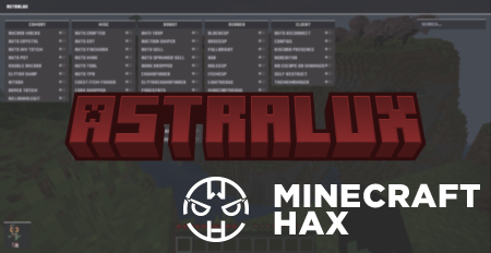 Hacked client Astralux for Minecraft 1.21.1 is your digital upgrade. It’s a powerful suite of tools designed for players who want full control over the game. From aggressive PvP to deep world